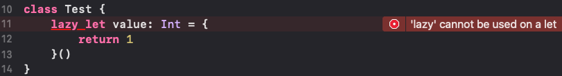 - 상수 속성은 초기화가 완료되기 전에 항상 값을 가져야 하므로 lazy 선언 불가