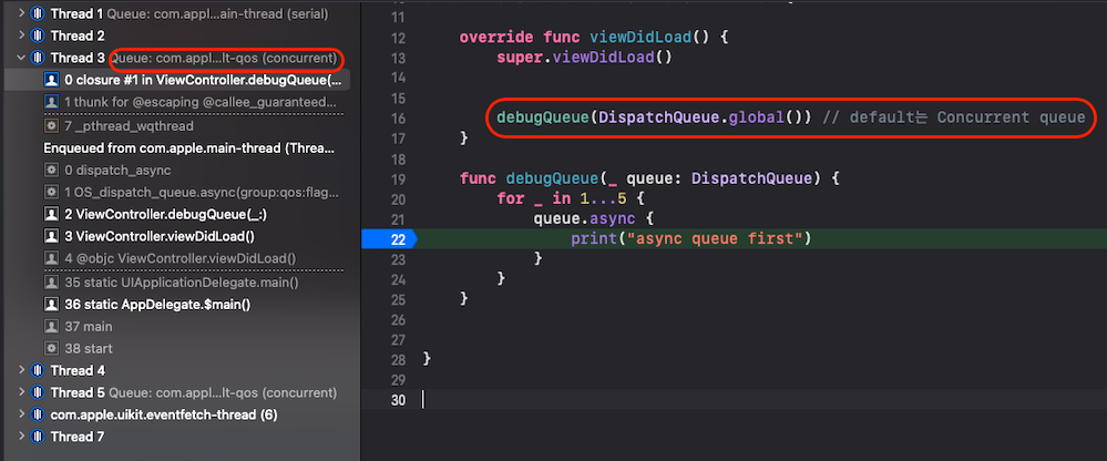 - DispatchQueue.init(label:qos:attributtes:) 사용: 우선순위, serial, concurrent 새롭게 사용 가능