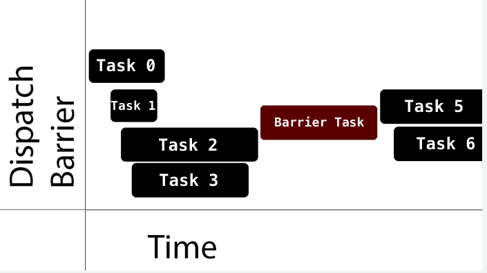 - Concurrent하게 일이 수행되다가 flag가 barrier로 설정된 작업이 실행되면 그 작업이 끝날때까지 Serial queue처럼 동작