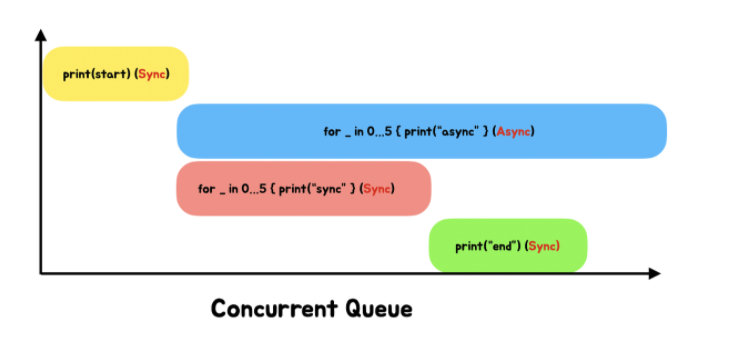 concurrentQueue.async { for _ in 0...5 { print("async") }}