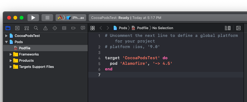 ( 코코아팟으로 Alamofire프레임워크 설치하기)