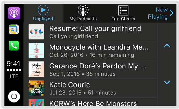 - 오디오 콘텐츠(오디오 북, 라디오, 팟 캐스트)를 제공하는 앱은 차량의 내장 디스플레이를 통해 해당 컨텐츠를 표출