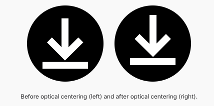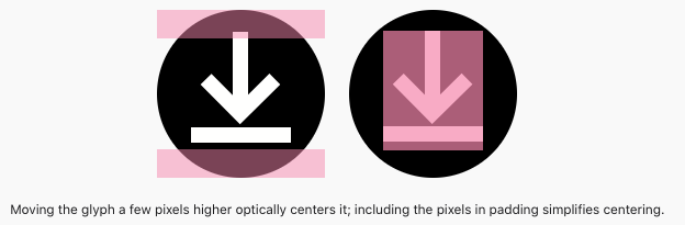 - 다운로드 glyph는 위쪽보다 아래쪽에 시각적 가중치가 더 높기 때문에 가운데에 있으면 너무 낮게 보일 수 있는점 존재