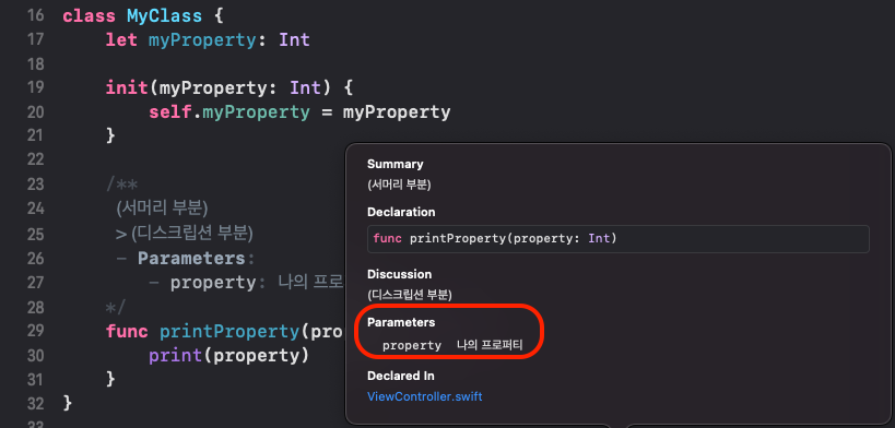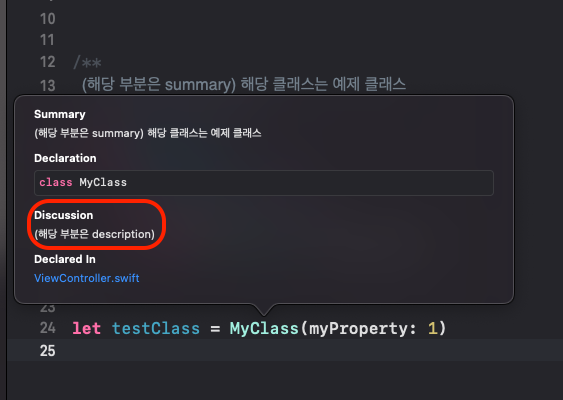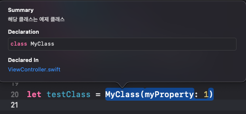 - Xcode에서 레퍼런스 문서의 요약된 내용을 보여주는 기능