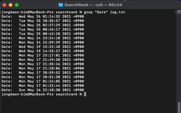 - log.txt에 저장하라는 명령어: 끝에 "> log.txt" 추가