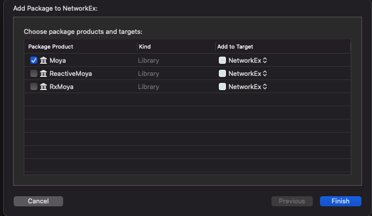 - 다운 > swift Package Manager > https://github.com/Moya/Moya.git