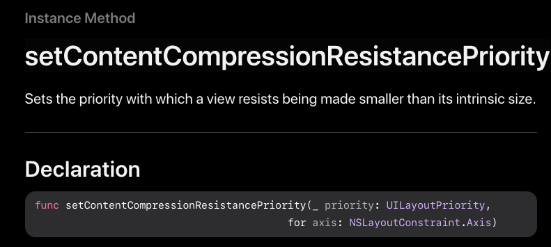 - https://developer.apple.com/documentation/uikit/uiview/1622526-setcontentcompressionresistancep