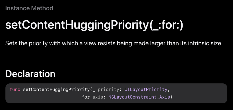 - https://developer.apple.com/documentation/uikit/uiview/1622485-setcontenthuggingpriority