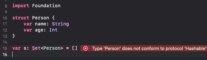 - struct안에 모두 hashable을 준수하는 프로퍼티만 있는 경우, Hashable을 써주기만 하면 완료