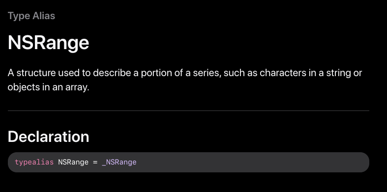 - NSRange: https://developer.apple.com/documentation/foundation/nsrange