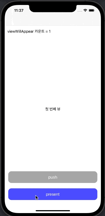 countLabel.text = "pageSheet인 두 번째 뷰의 dismiss 카운트 = (\(viewWillAppearEventCount))"
