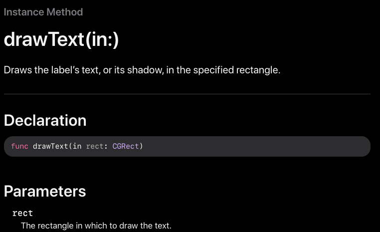 - drawText(in:): https://developer.apple.com/documentation/uikit/uilabel/1620527-drawtext