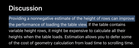 - estimatedRowHieght: https://developer.apple.com/documentation/uikit/uitableview/1614925-estimatedrowheight