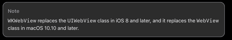 - iOS 8 아래 버전에서는 UIWebView를 사용했지만 deprecated되었고 WKWebView를 사용하게끔 애플에서 정의