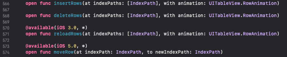 - beginUpdates(), endUpdates()의 역할: 애니메이션 블록을 만들어 주는 메소드이므로, tableView(_:numberOfRowsInSection:) 변경되었다는 것을 endUpdates()가 불릴때 실행
