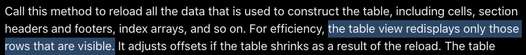 - reloadData(): https://developer.apple.com/documentation/uikit/uitableview/1614862-reloaddata