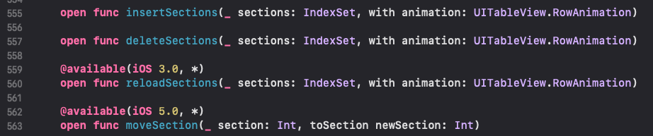 - moveSection(_:toSection:): https://developer.apple.com/documentation/uikit/uitableview/1614940-movesection