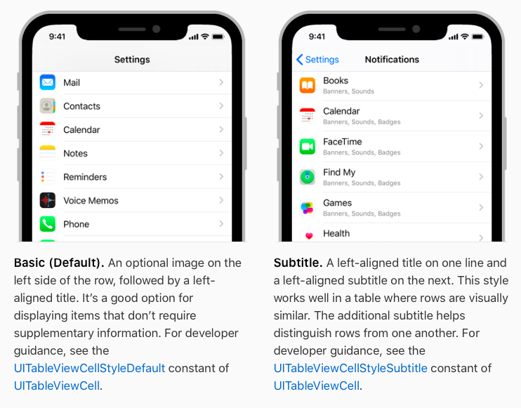 커스텀 Cell이 아닌, 디폴트를 이용하려면, tableView.register(cellClass:forCellReuseIdentification:)에 다음과 같이 작성