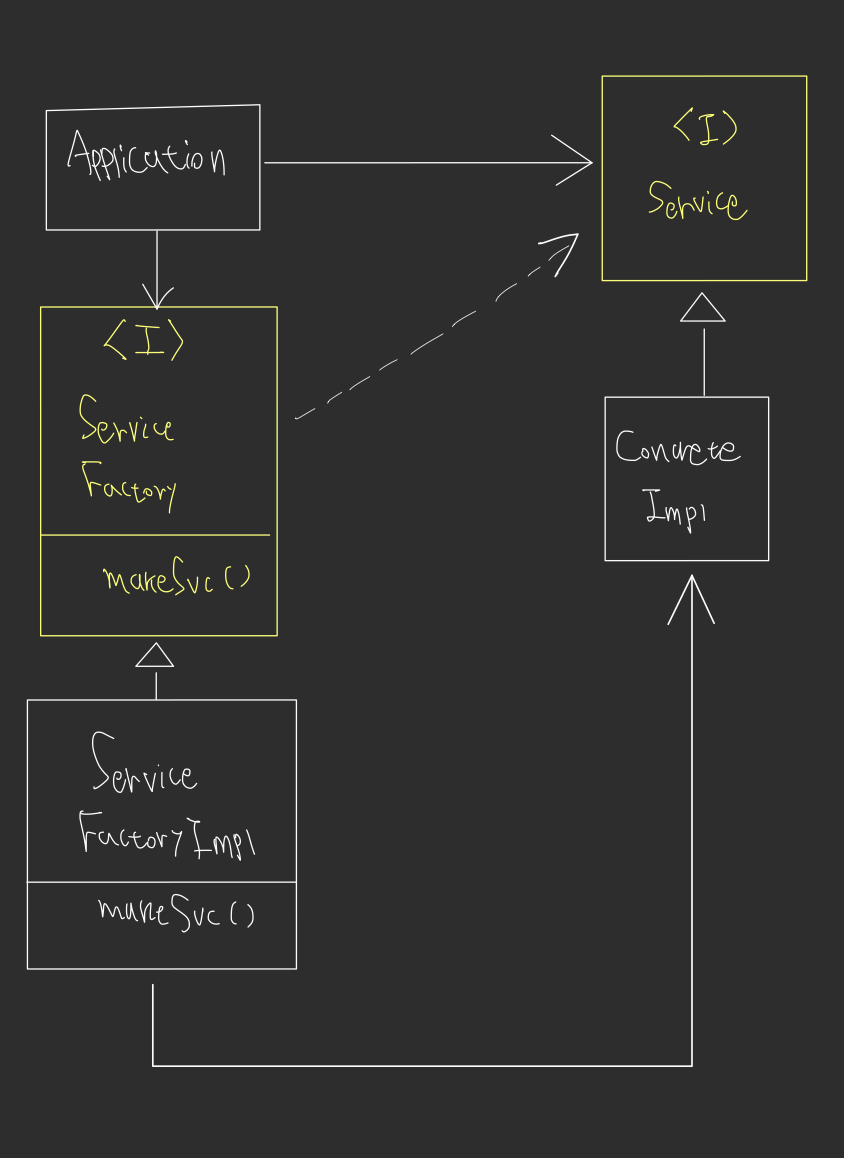 // 핵심체가 아닌 Factory클래스의 구현체에서는 다른 구현체 의존해도 무방