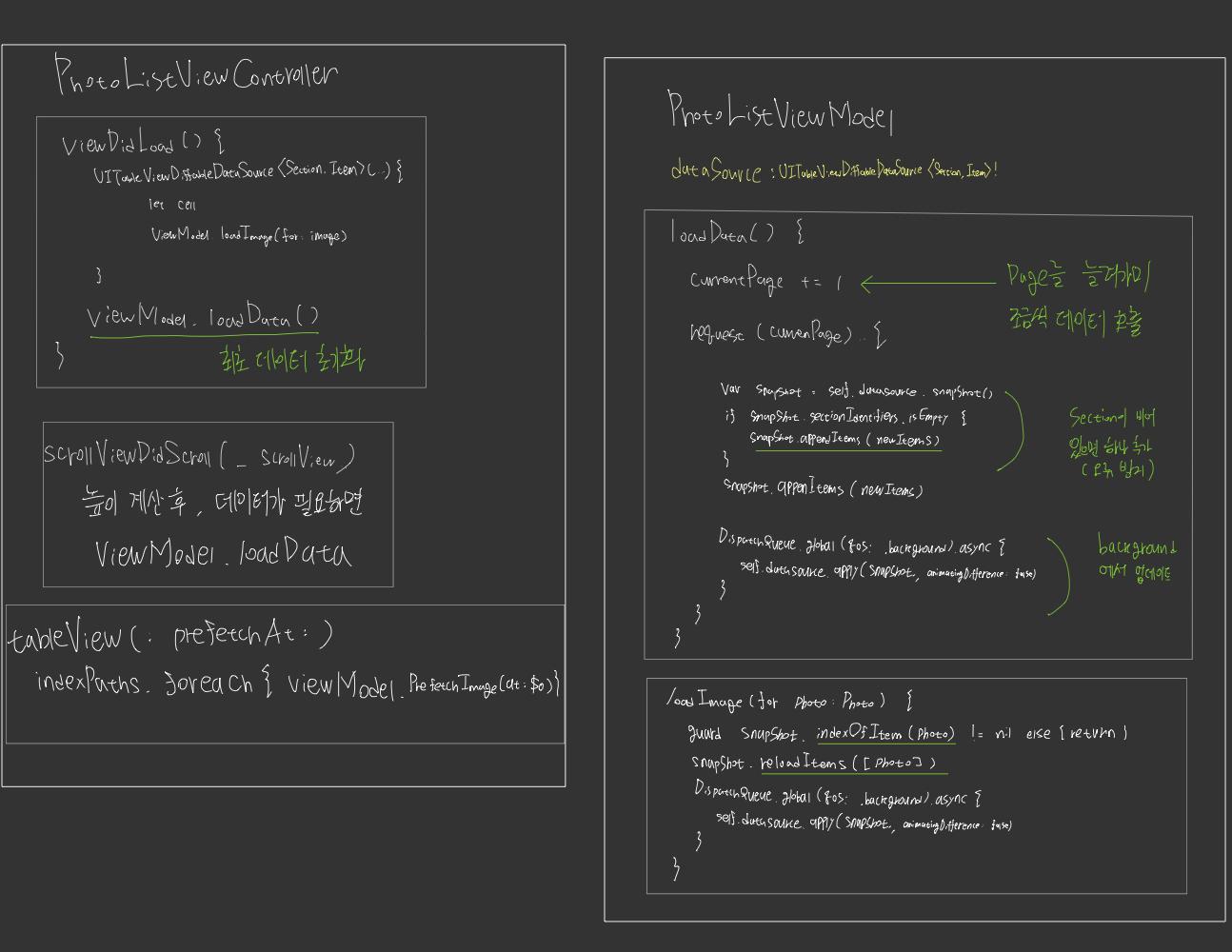 - 아이디어: indexPaths에 해당되는 셀에 필요한 데이터를 미리 받아오는 메소드 (아직 보이지 않는 셀들을 미리 시스템에서 구분하여 델리게이트 동작)