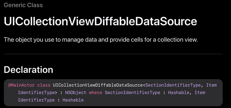 - UICollectionViewDiffableDataSource: https://developer.apple.com/documentation/uikit/uicollectionviewdiffabledatasource