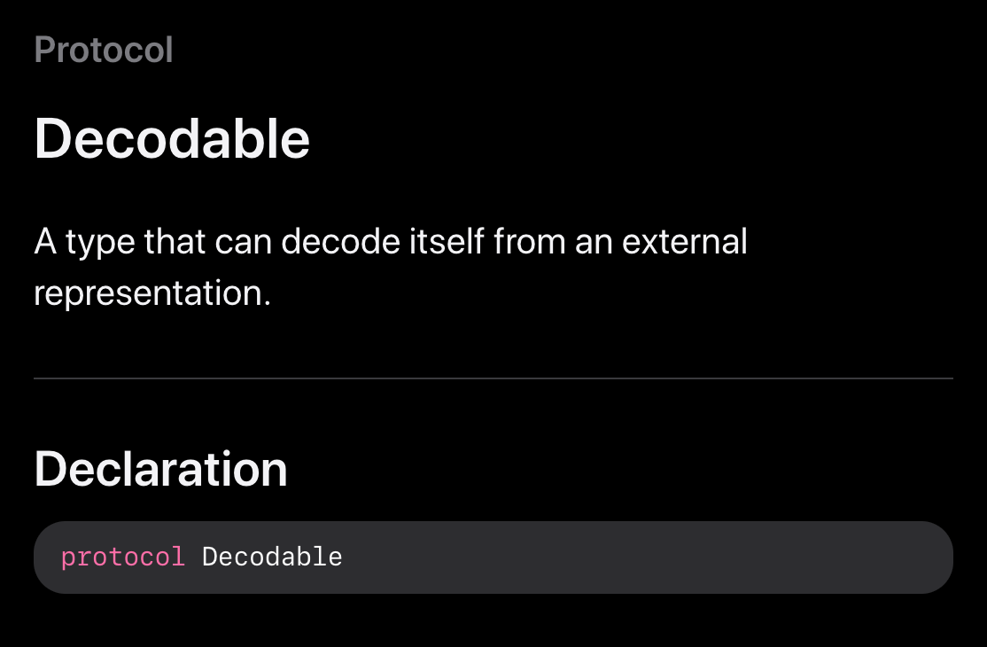 - Decodable: https://developer.apple.com/documentation/swift/decodable