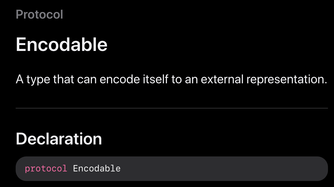 - Encodable: https://developer.apple.com/documentation/swift/encodable