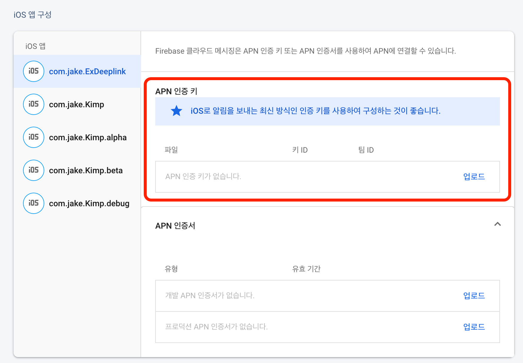 - Apple 푸시 알림 인증키가 필요한 이유: FCM에서는 이 값을 이용하여 APNs에 인증값으로 송신