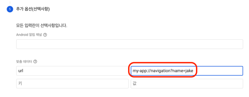 - Provider Server (Firebase)에서 딥링크로 아래에서 설정할 key값은 url, value값은 아래처럼 설정할 것으로 기억