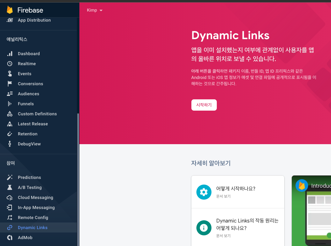 - Firebase 콘솔 접속 > Dynamic Links 탭 > 시작하기