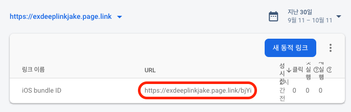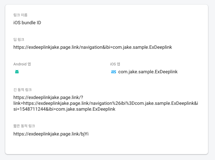 - 번들 아이디가 com.jake.sample.ExDeeplink에서만 열리는 다이나믹 링크