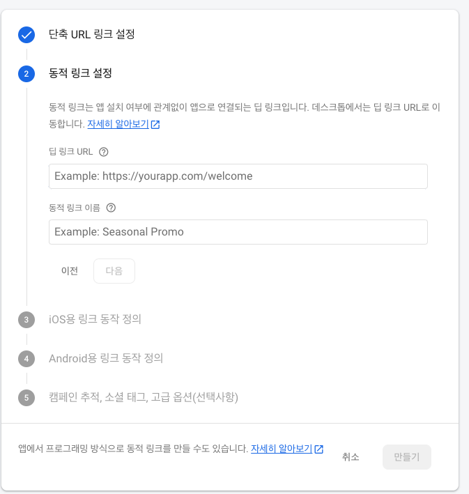 위 Firebase Console에서 딥링크를 구현했지만, iOS내부에서도 dynamic link를 동적으로 정의할때 사용