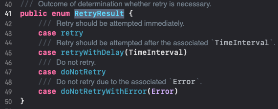 - completion으로 RetryResult를 넘기며, 재시도하는 유형에 대한 값