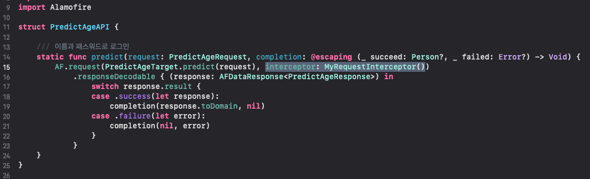 - 사용하는 쪽 - AF.request(_:interceptor)에서 interceptor에 객체 삽입