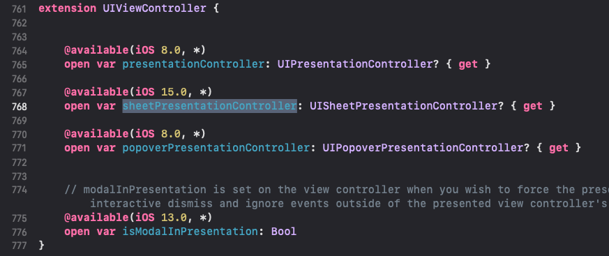 - UIViewController는 내부적으로 sheetPresentationController 프로퍼티를 가지고 있으므로 그 값을 활용