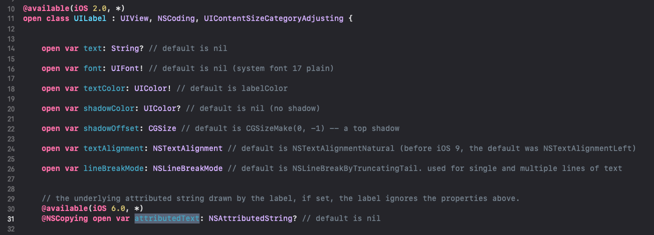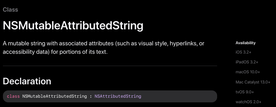- NSMutableAttributedString: https://developer.apple.com/documentation/foundation/nsmutableattributedstring