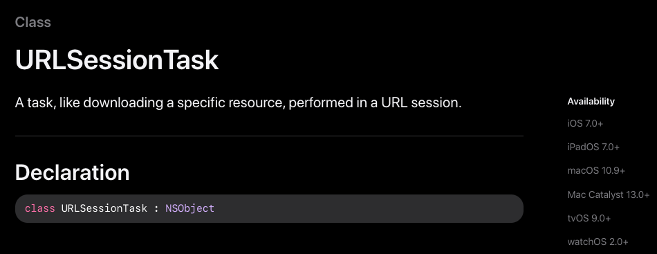 URLSessionTask: https://developer.apple.com/documentation/foundation/urlsessiontask