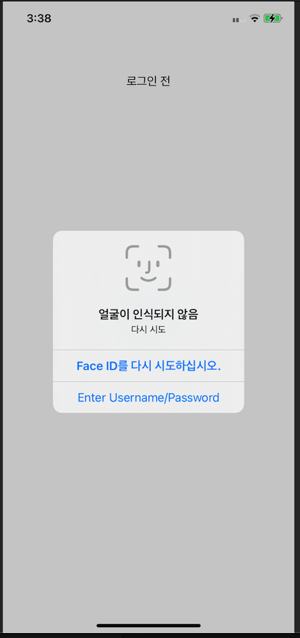- 처음 Face ID 권한 요청을 위해 최초 한번 뜨는 alert