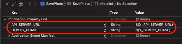 1) .swift파일 코드에서 현재 phase에 해당하는 값을 가져오고 싶은 경우, info.plist에서 값을 가져올 수 있고 info.plist에서는 정의한 xcconfig의 내용에 접근할 수 있으므로 info.plist에 xcconfig 내용 매핑
