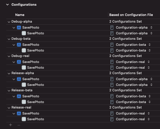 - alpha, beta, real 각각 하나씩 만들어서 총 3개 생성 (Debug와 Release는 동일 config 파일을 공유)