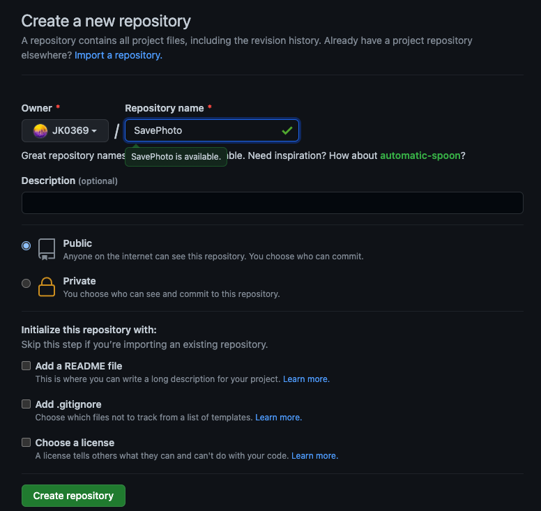 - 만약 git repository를 생성하지 않았다면 생성 후 git 연결