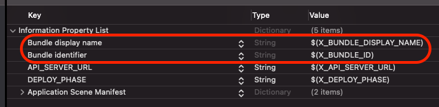 2) 내부 자체적으로 사용되는 info.plist key에 value값도 xcconfig에서 설정한 값으로 매핑