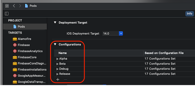 > pod 프로젝트 파일 모두 Configuration을 main처럼 alpha, beta, real(release)을 생성해야 모두 빌드 실패 방지