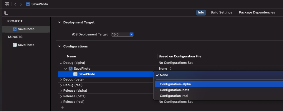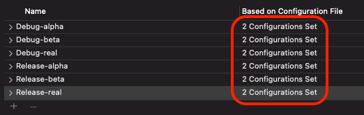 - 만들어진 .xcconfig 파일을 Xcode Configurations에 설정