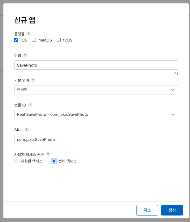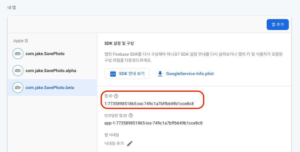 - 주의할점은 Name에 괄호가 들어가면 Firebase관련 파일에서 에러가 나므로 괄호 없이 아래처럼 작성