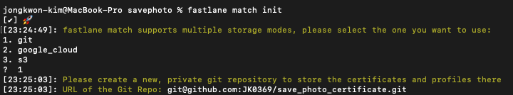 3. fastlane match (certificate, provisioning profile 정보를 git에 저장)