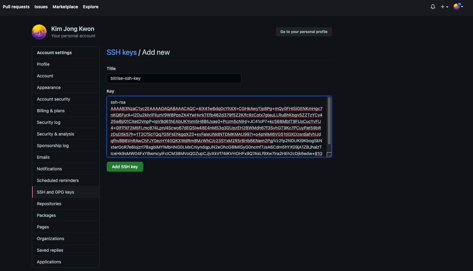 - public key: bitrise-ssh.pub > github의 ssh키에 등록