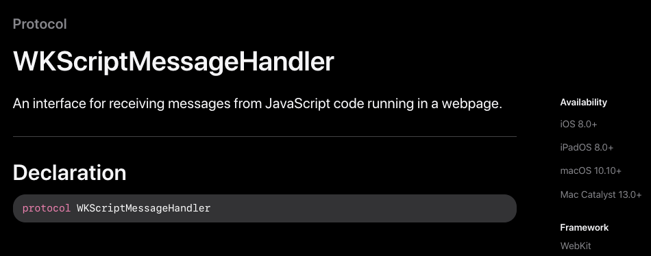 - WKScriptMessageHandler: https://developer.apple.com/documentation/webkit/wkscriptmessagehandler