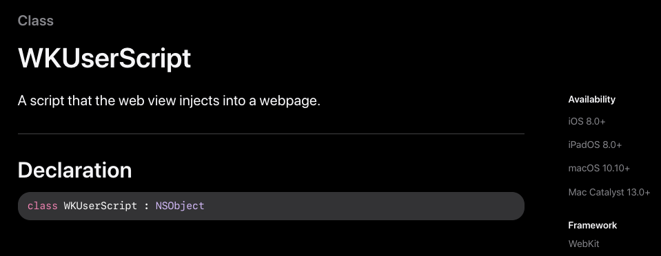 - WKUserScript: https://developer.apple.com/documentation/webkit/wkuserscript