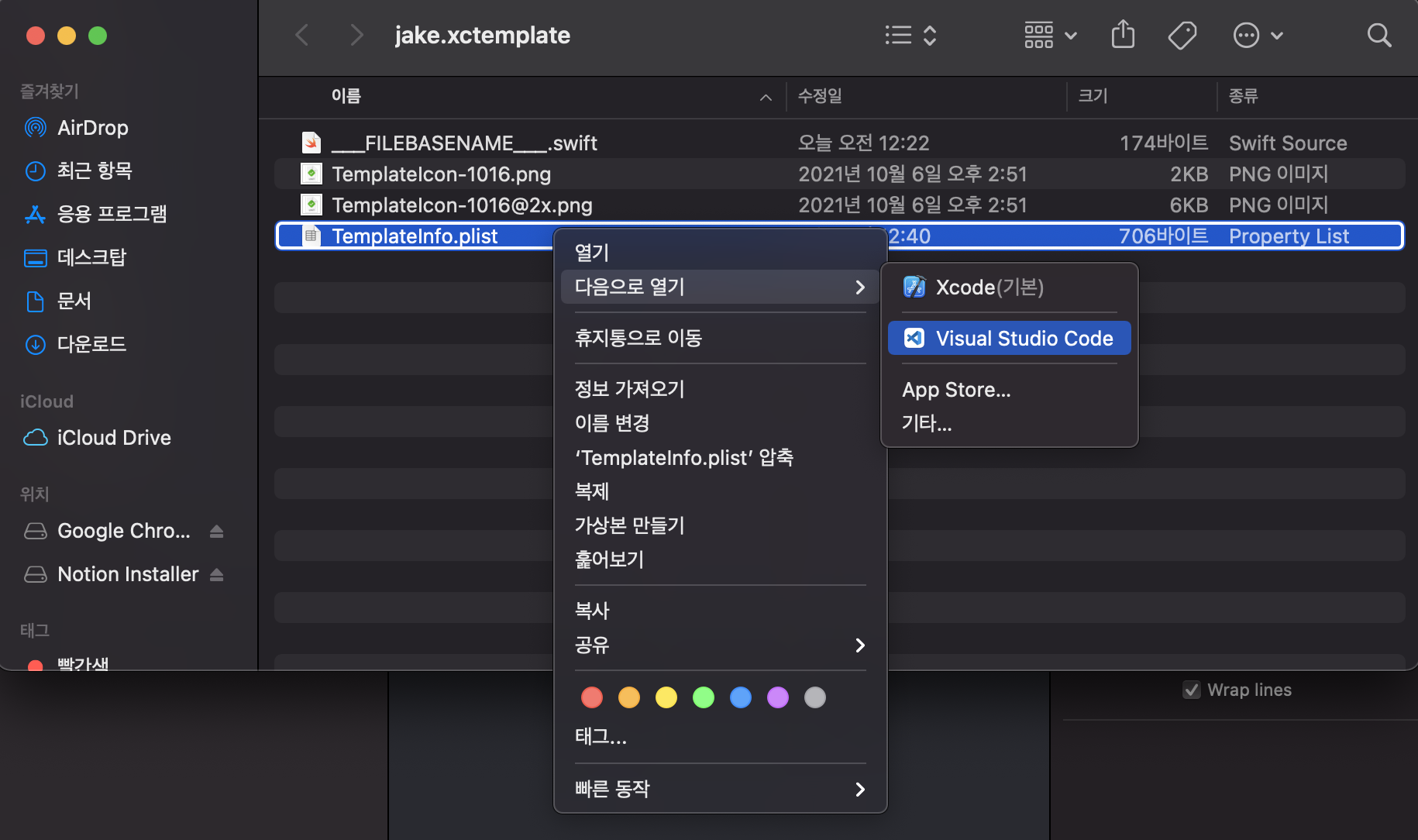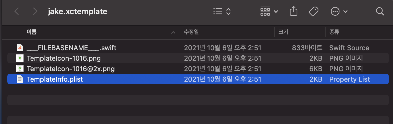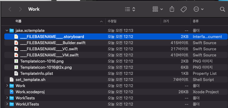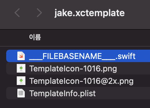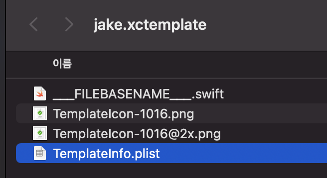 - 해당 디렉토리에 .xctemplate 폴더를 만들고 template생성에 필요한 것들을 삽입